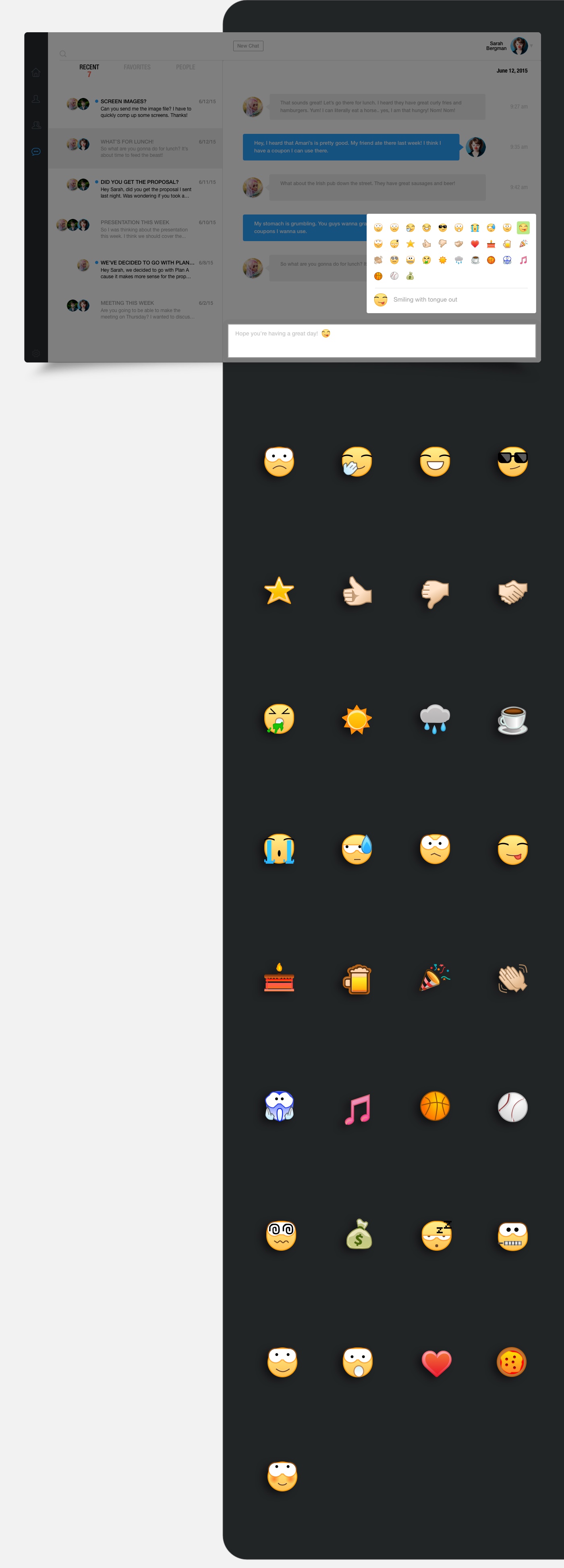 Zoom emojis were created to add a fun and engaging way for users to communicate with each other using our webapp. Emotions range from happiness to sadness. We wanted to cover a wide array of emotions that we, as people, use on a daily basis. It also aligns with our motto.. "delivering happiness to our users."