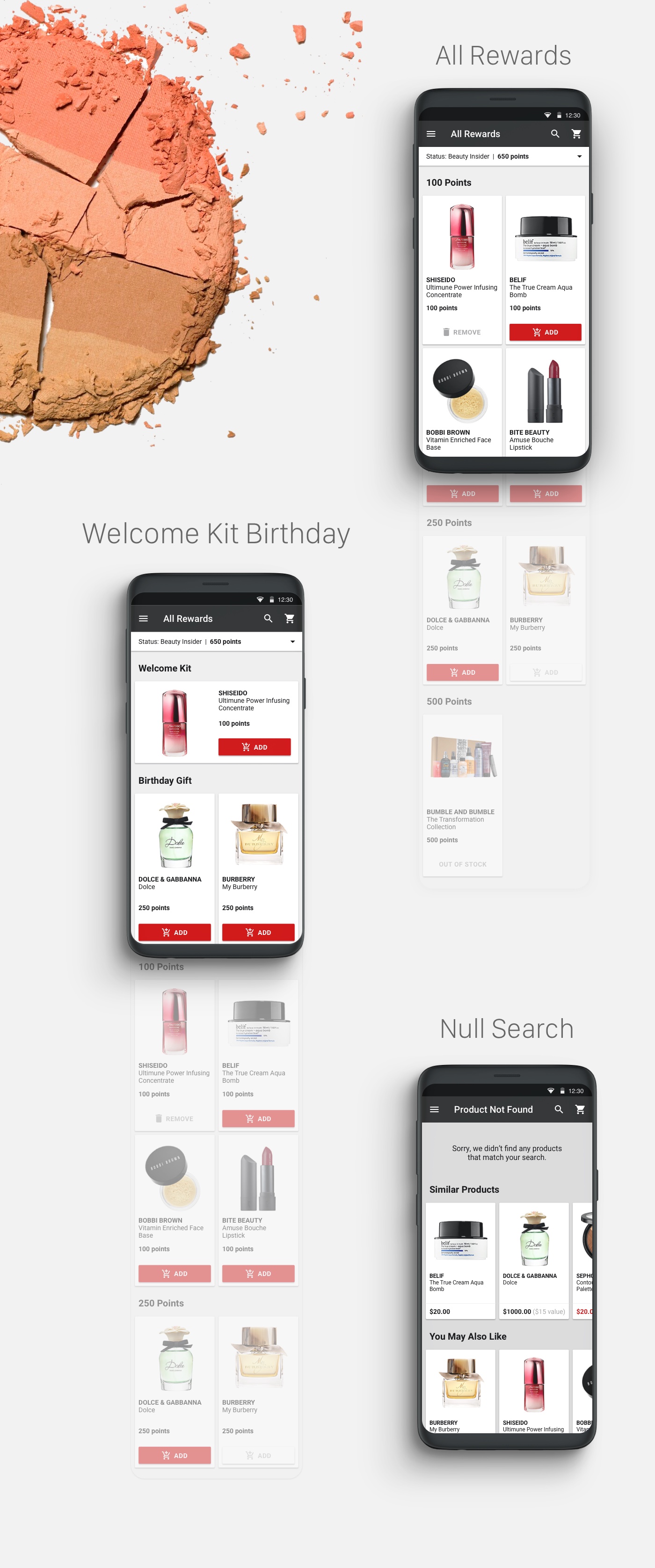 From Bazaar Rewards program to the Sephora Rewards program, the design elements and visual language needed a new fresh update to its look and feel. This included the new rewards meter, daily rewards bazaar, brand spotlight, and shop all rewards section.