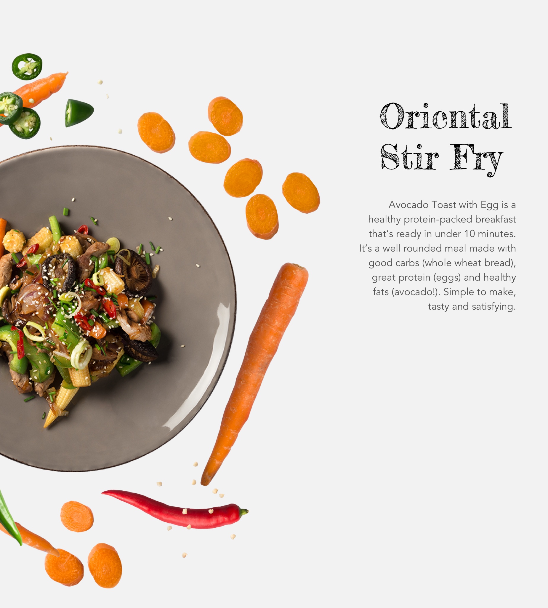 This is a concept of a simple and effective display of a few prepared dishes in a click slider format. The dishes reveal a visually appealing image with a short description of the each dish along with a call to action text link where you can get the recipe.