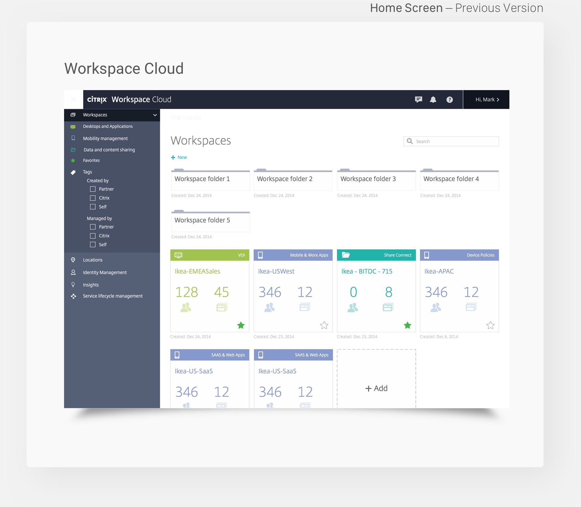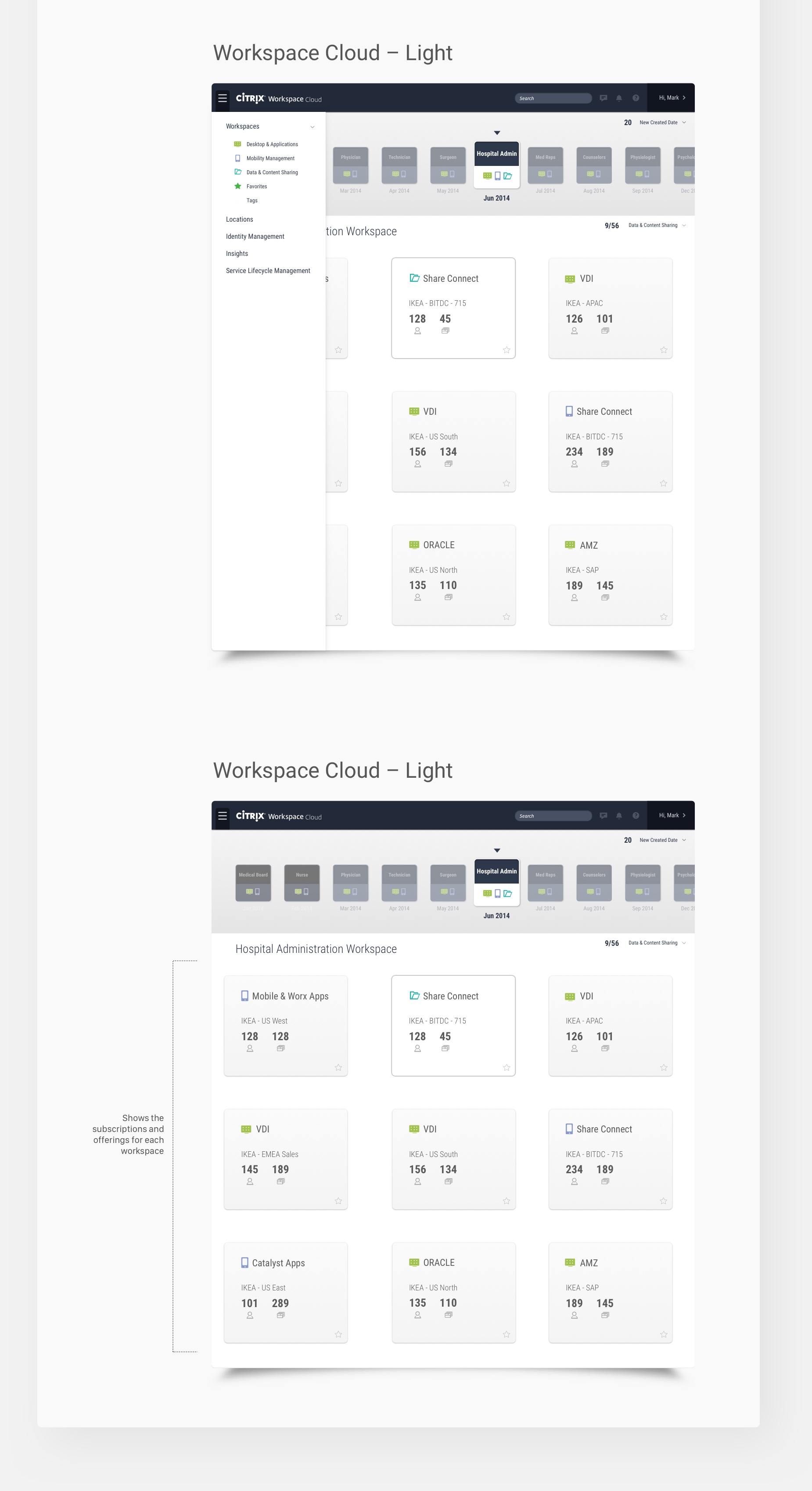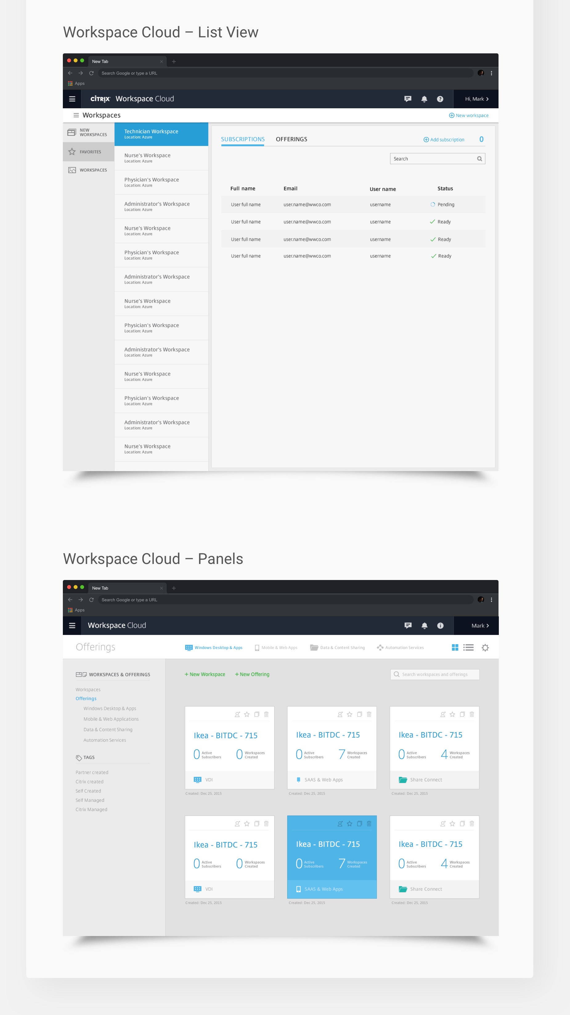 The Offerings page provides workspaces and offerings to to users who utilizes windows desktops & apps, mobile & web apps, data & content sharing, and automation services. The design was to emphasize a clean dashboard with neutral colors, adding more value to the chosen primary set colors.