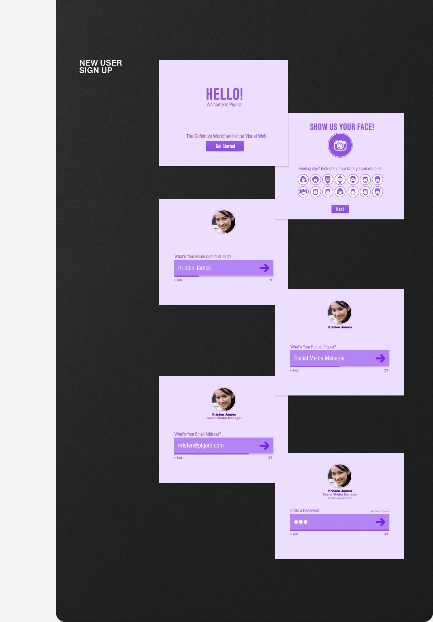 This is design systems exploration for PIQORA. Strong emphasis of bold and strong colors and font with simple animations for forms were the goals for the new PIQORA look and feel.