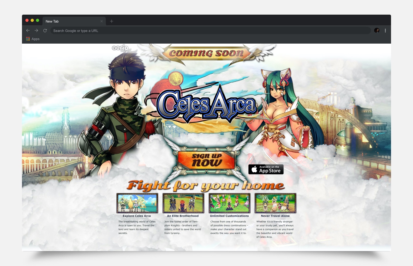 The teaser page consisted of colorful characters based on an aerial pvp game.