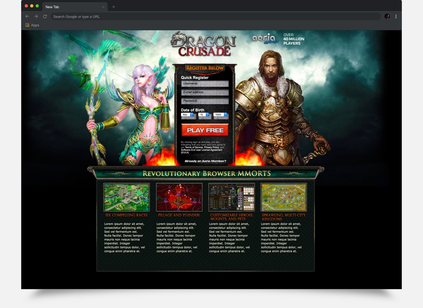 AeriaGames Dragon Crusade Landing Page