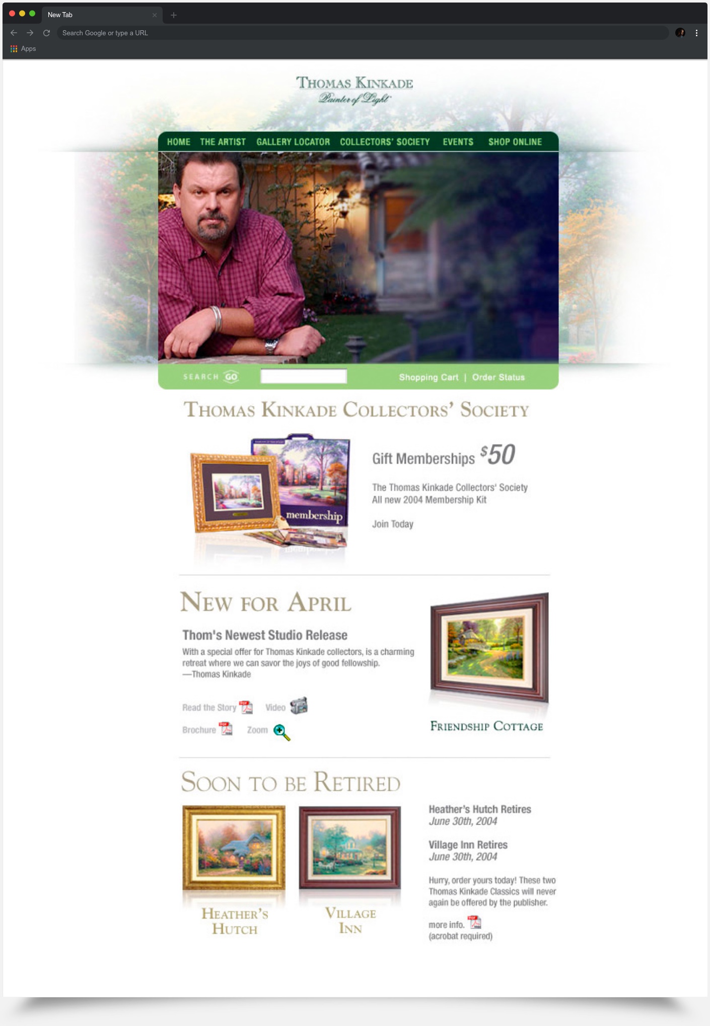 This was the homepage for Thomas Kinkade. This fresh approach was a way to separate itself from the stuffy old style.