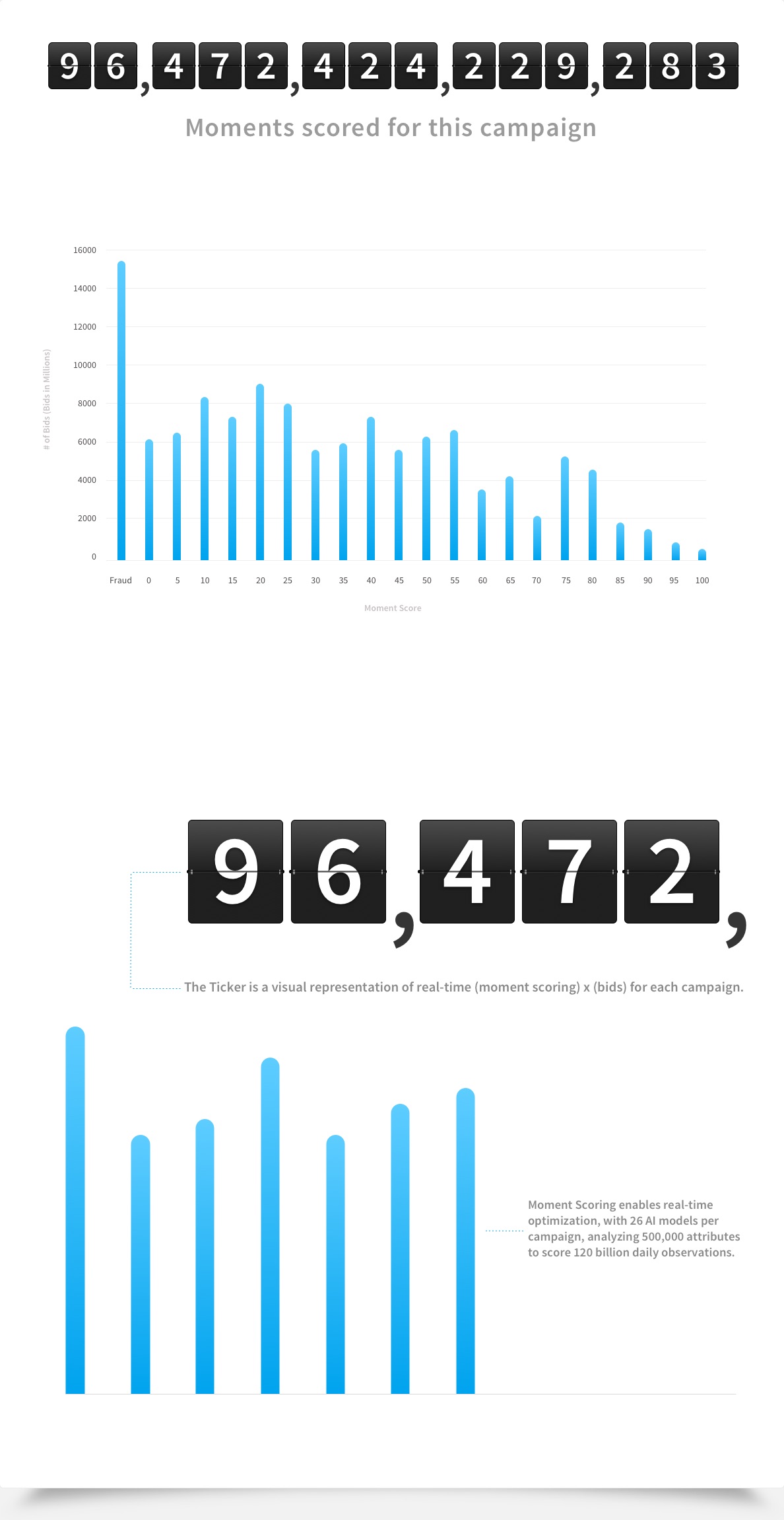 Moment Scoring conducts real-time calculations for each ad opportunity, assessing the likelihood of consumer engagement across various channels, devices, and objectives. These patterns reveal hidden attributes and variables within the complex data, enhancing results for marketers striving to achieve online conversions, boost brand preference, or meet other business goals.